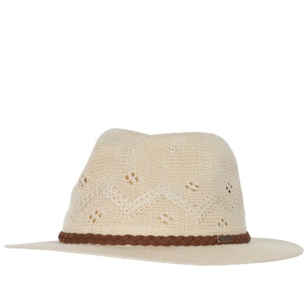 Keep the sun off without adding weight with the Flowerdale Trilby Hat from Barbour. The breezy, textured crochet-style weave is finished with a braided, pure leather band that looks great with jeans and a tee around town, or to top off your beach-day attire. The unstructured style is great for packing.
