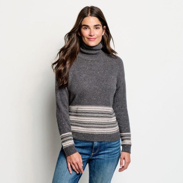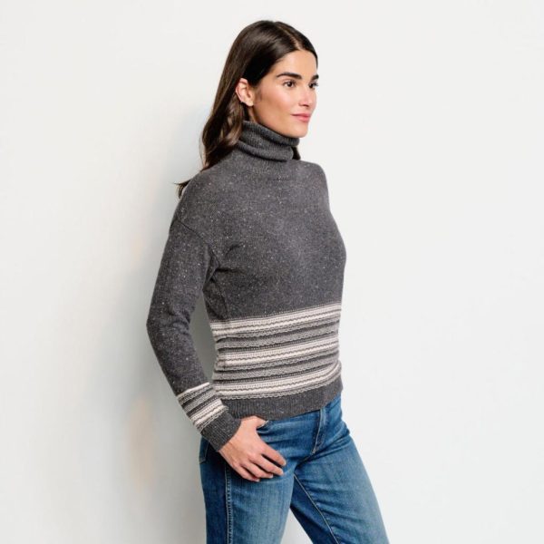 A contemporary take on the classic turtleneck, this standout style combines Donegal yarns, a richly textured striped border, and casual dropped shoulders. Silky-soft and warm, cotton and wool yarns are warm and breathable. Classic Fit, universally flattering with moderate shaping.