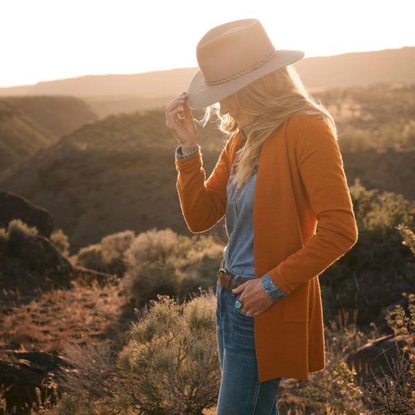 Handmade in Lancaster County, PA, at the oldest hat company in the USA, this wool felt hat trimmed with a leather band makes a statement with any outfit you pair it with. Naturally water-resistant, it shields your face from both sun and rain with a 3″ brim. Finished with an interior comfort band.