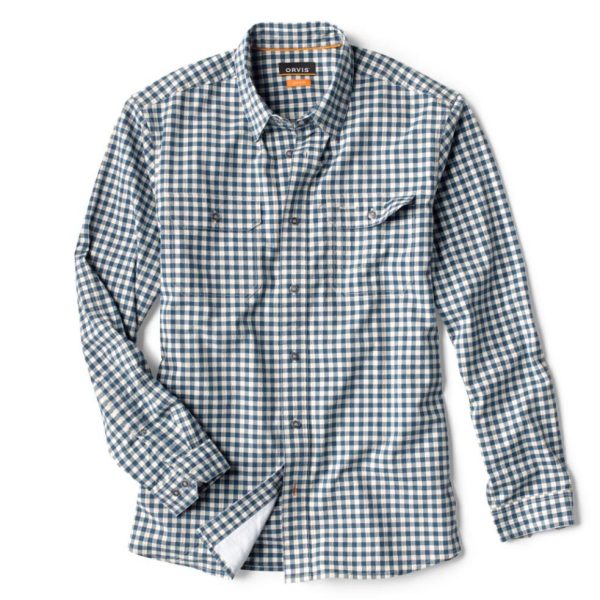 Our updated work shirt design doesn‛t skimp on technical features and boasts an eco-friendly quick-drying blend that’s built to perform. Lightweight 3.8-oz. textured dobby weave with organic cotton and recycled polyester has just the right amount of stretch—plus UPF 30 sun protection. Reinforced elbow patches add durable protection for the long haul. Two button-closure chest pockets—one with an extra layer of fabric to create an additional pocket, plus a convenient loop to keep your shades secure. Hidden button-down collar and sunglasses cleaner at hem. Active fit.
