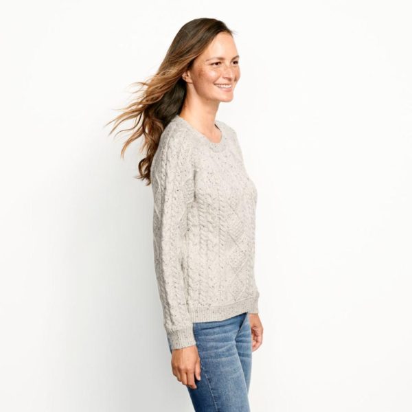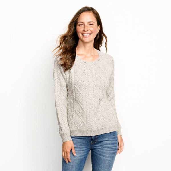 Cashmere and cotton yarns make our Donegal wool sweater feel luxuriously soft and warm—without weighing you down. Cable stitches recall the artistry of Irish sweaters from the Aran Islands. Raglan sleeves ensure roomy comfort, especially important for layering, while a curved hi-low hem lends a contemporary feel. Classic Fit, universally flattering with moderate shaping.
