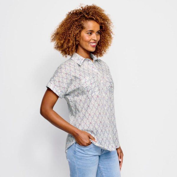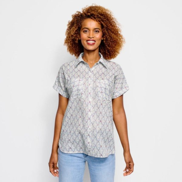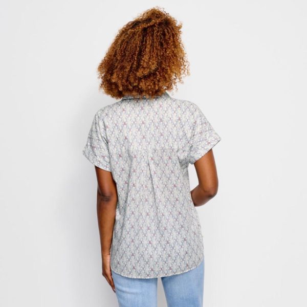 An iconic American style, our cool and breathable pure cotton camp shirt offered in multiple prints lends a fun vibe to any outfit. Tuck it in or wear it loose over pants, shorts, or skirts. Button-front style is finished with two chest pockets and dolman sleeves. Classic Fit, our most relaxed style.