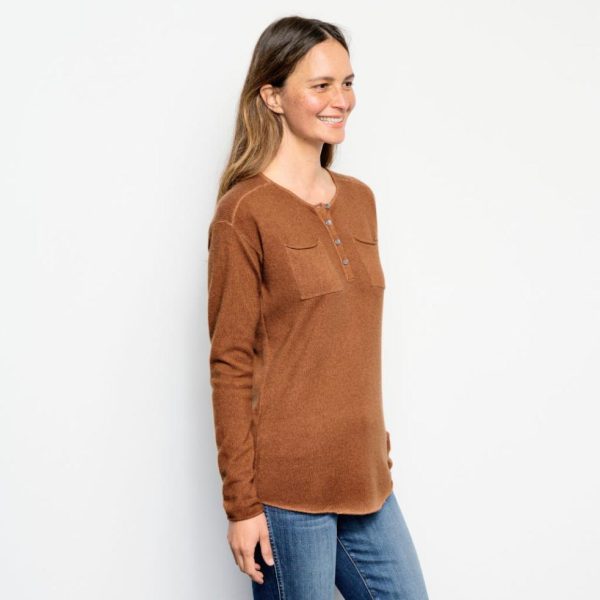 Our pure cashmere takes on a casual attitude in this garment-dyed Henley sweater so you can enjoy its incredible softness any dayno special occasion required. Harvested from goats who are sustainably raised and combed by hand in Inner Mongolia, the producers of the world’s best cashmere, only the loftiest, downiest fibers are used to create our sweaters. Garment dyed, each sweater is faded to perfection, while linked stitches at the yoke add visual interest. Classic Fit, universally flattering with moderate shaping.