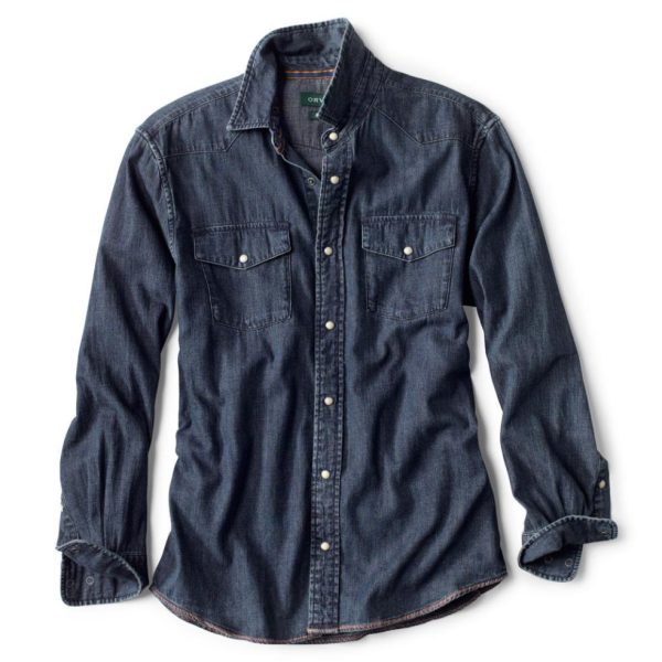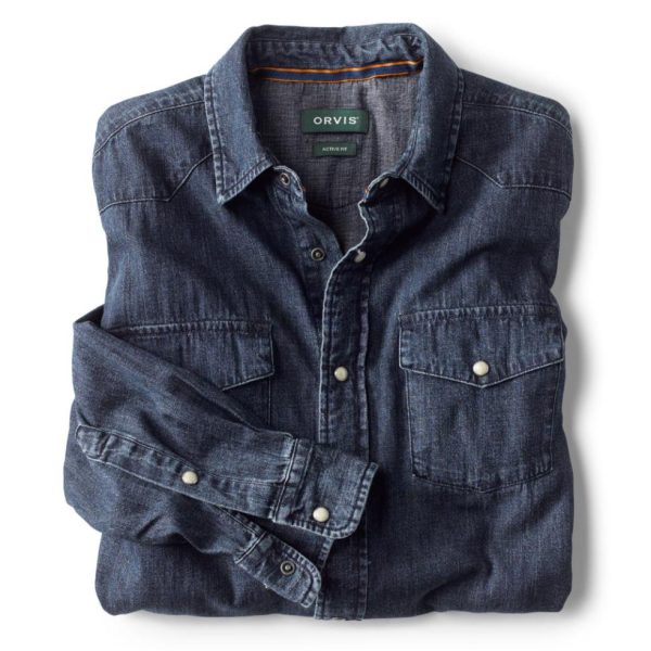 With a history that’s over a century long, the denim shirt is timeless and authentic. We used a substantial 10.5-oz. cotton in an indigo wash to create this Great Bend shirt that’s comfortable for all but the warmest months. And just like your jeans, this shirt will age gracefully over the years. Detailed with orange and navy tape inside the back neckline and orange stitching at the hem. Spread collar, two-snap adjustable cuffs, and two snap-close pockets. Classic fit. In dark indigo.