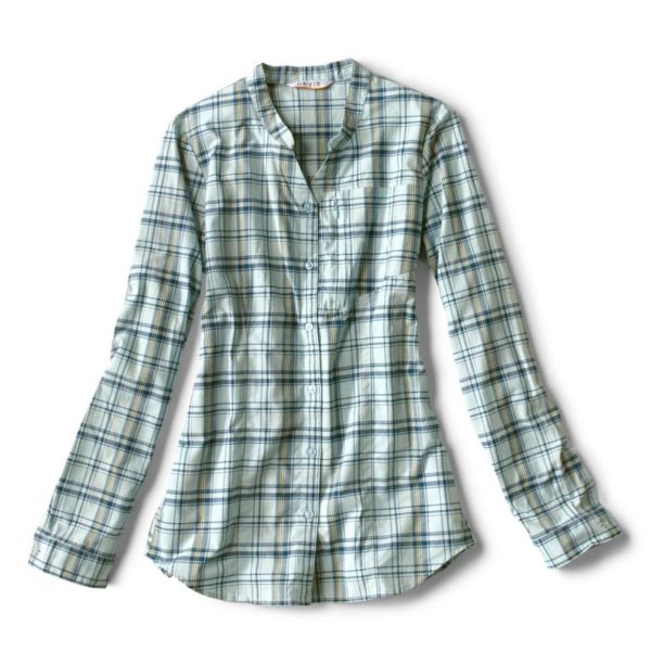 Give your usual button-ups a break. Our modern band-collar Ibis Shirt doesn’t skimp on technical details for flattering performance without compromise. On the water, or just around town, you’ll reach for this new favorite on repeat. The quick-drying, durable, and breathable blend stretches to match you move for move with a textured, soft hand that’s a pleasure to wear. Back yoke and center-back pleat enable unrestricted range of motion. Hidden-zip chest pocket keeps essentials handy so you can go hands-free. Shaped hem looks great untucked, but can easily be tucked in. Button cuffs. Active Fit, shaped to contour your figure without restricting. In freshwater.