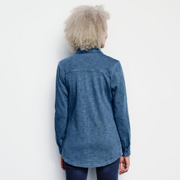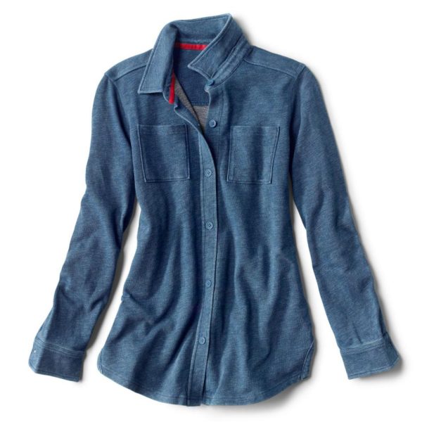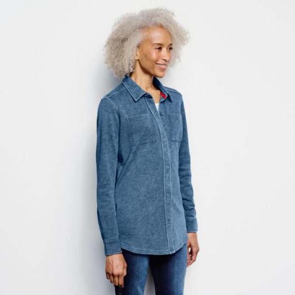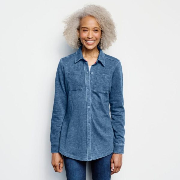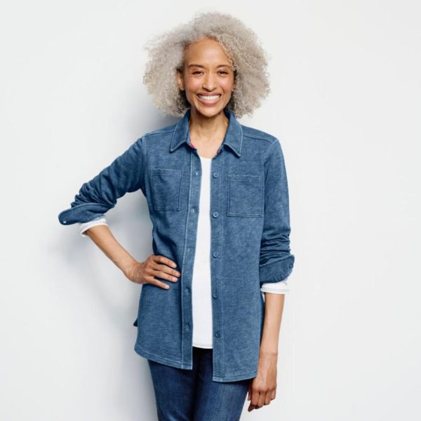 So soft and comfy, you’ll never want to take it off, our Indigo Knit Shirt Jacket has that gently weathered look of your favorite sweatshirt. You know, that one you wear on repeat. A just-right layer any time of year, the pure cotton French terry is yarn-dyed using genuine indigo. Button-front style is finished with button cuffs and a side-slit hem. Classic fit. In indigo.