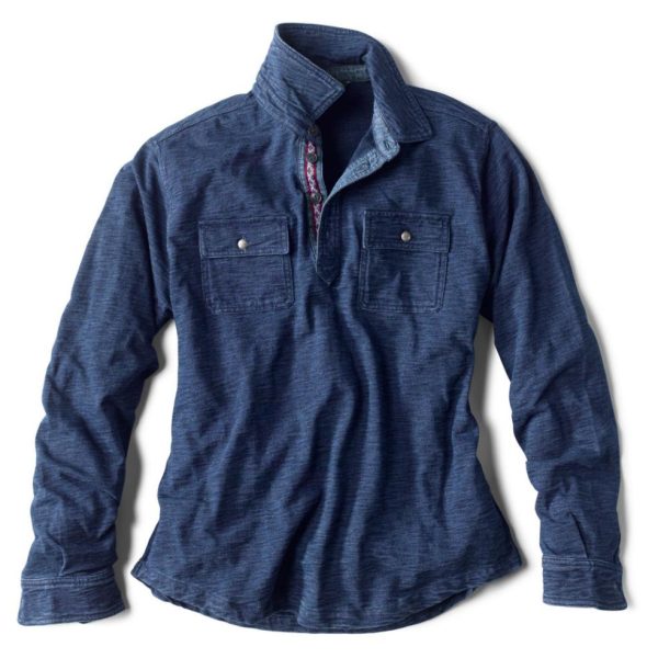 Heavy 245-gram pure cotton knit, our Indigo Button Pullover is made to layer on crisp days for breathable comfort with substance. Richly colored genuine indigo ages gracefully, earning its patina through seasons of wear. Finished with Southwest-inspired detailing at the three-button placket with woven details under pocket flaps and inside the neck. Curved hem can be worn untucked or tucked. Finished with button-closure cuffs and flap pockets. Classic fit. In indigo.