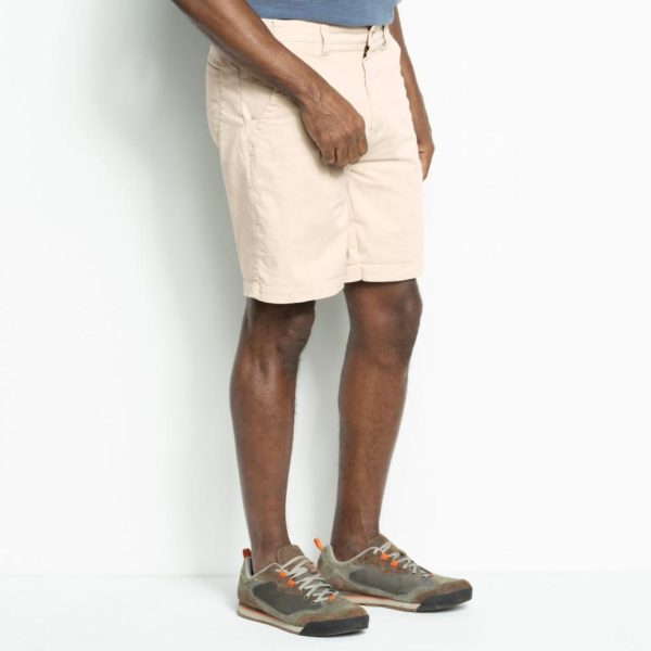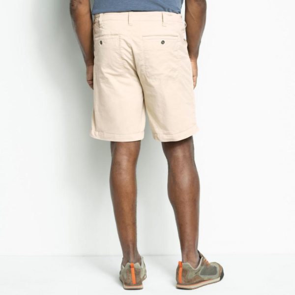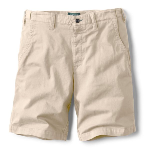 Hit the road in complete comfort wearing our stretchy twill Montana Morning® Shorts. We added stretch to the cotton twill fabric, and hidden stretch in the waistband, so these shorts can handle the most vigorous itineraries and adventures without holding you back. The flat-front casual construction allows you to dress them up or down as needed. Back patch pockets with button-through closures for added security. Interior pocket bags feature Orvis logo and fly print. Classic fit.