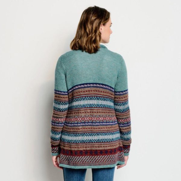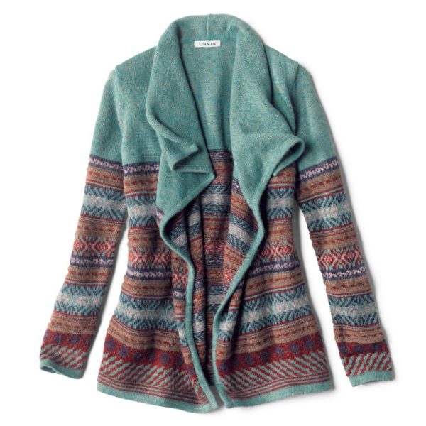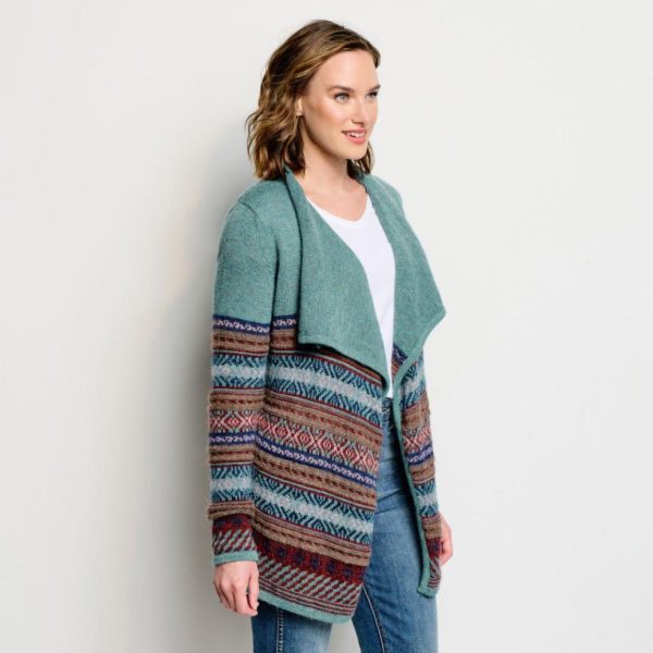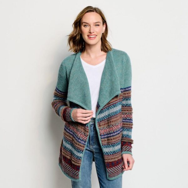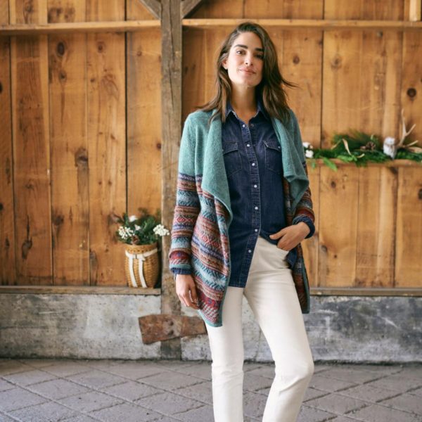 Knit from invitingly soft and cozy Peruvian alpaca and cotton yarns, our easy New Horizons Cardigan will brighten up the season. The open waterfall style drapes wonderfully and is easily dressed up or down, making it equally appealing paired with your favorite cords and a tee as it is with a skirt and boots. Classic Fit, universally flattering with moderate shaping. In blue horizon stripe.