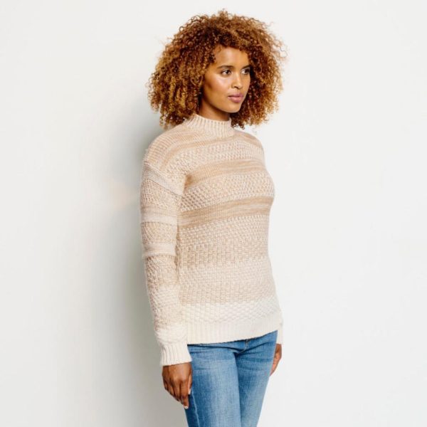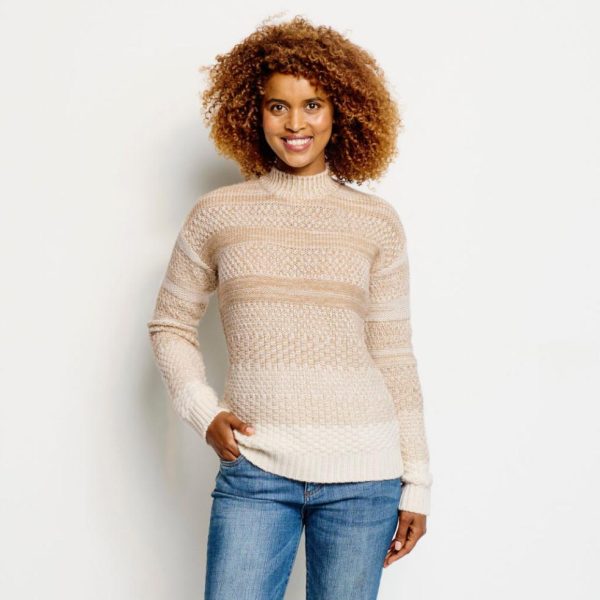 Sink into the softness of this Ombré Mixed Stitch Sweater and face cold days with a smile. A blend of wool and cashmere, the yarns are next to skin soft and boast natural performance—breathability, warmth, and moisture management—so you’ll not only look amazing, but feel amazing, too. A mix of jersey, moss, and box stitches in a tonal ombré pattern creates rich texture and visual appeal. Finished with dropped shoulders and ribbed cuffs and hem. Classic Fit, universally flattering with moderate shaping. In cream multi.