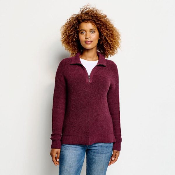 This understated mockneck quarter-zip sweater with a richly textured ottoman stitch and detailed seaming perfectly balances comfort and style. Unzip the mockneck on warmer days or to show off layers. Dropped shoulders and a side-slit hem complete this casual look. Classic Fit, universally flattering with moderate shaping.