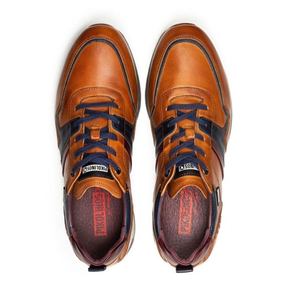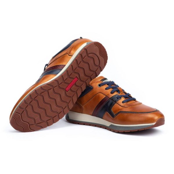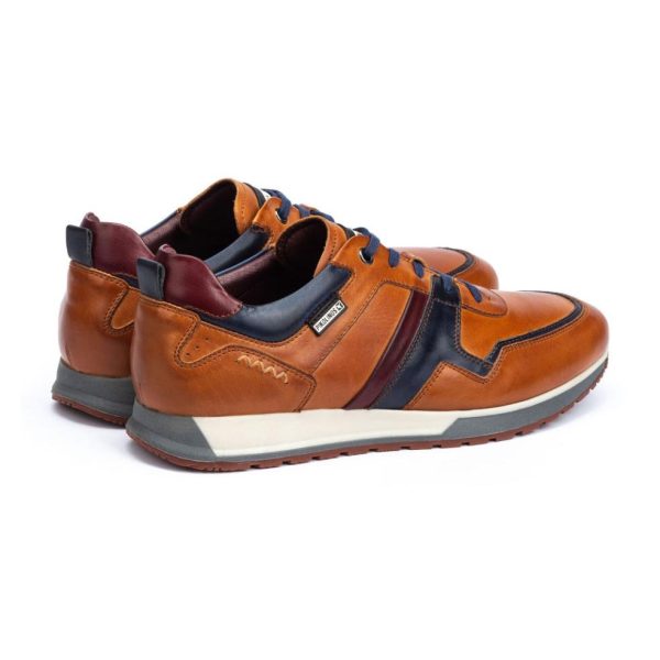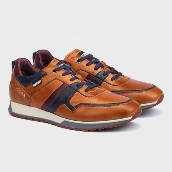 Hand-burnished leather gives the comfortable Pikolinos Cambil Sneakers added character, as do the subtle burgundy accents. The leather is hand burnished and tanned in Elche, Spain. Very comfortable to wear all day. In brandy.
