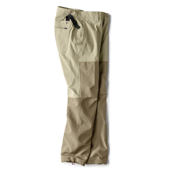 You no longer have to compromise in order to hunt in comfort during the early season. When mobility, breathability, and moisture-wicking matter the most, these pants are the perfect choice. To keep you cool, the lightweight fabric is textured to promote wicking, venting and temperature control. You’ll still be protectedthe tight weave resists most brush. Durable Cordura with technical stretch and articulated design deliver comfortable mobility. Treated with DWR, the fabric sheds light moisture in the field. Pockets are made of ventilating mesh. Front right pocket is reinforced to resist wear when carrying a knife. Top quality YKK zipper. Hidden drawstring in cuff for ground-up defense against branches and seeds. The cell phone pocket is placed on the right hipso you won’t have to sit on your phone. A snap keeps your phone safe, and a pull tab ejects it to give you easy access when you need it. Two back pockets (right is zippered). Active fit. In sand/dark khaki.