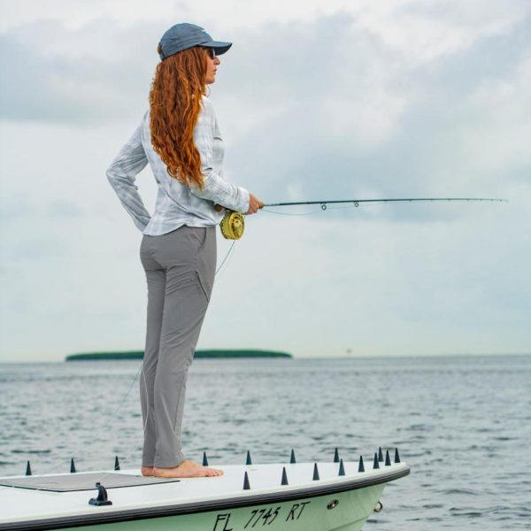 At first glance, the industry’s highest UPF rating of 50+ in our Women’s PRO Stretch Shirt might seem like its standout feature. Until you put it on and it becomes apparent: This shirt is so light, it hardly feels like you’re even wearing one. The main body is made from a stretchy, woven fabric that allows for enhanced comfort—even when making aggressive movements like casting for distance, poling, or back rowing the boat above a pod of risers. A collar made from moisture-wicking, breathable Polartec® Power Dry® catches and dries sweat and spray as it runs off your head and neck. Underarm gussets increase your range-of-motion with zero restriction. The shirt’s anti-odor finish means you’ll get multiple wearings between washings and spend much less time dealing with laundry when you could be fishing. Hidden sunglass/cell phone cleaner in lower hem. Two concealed side pockets for accessories and gear. Athletic Fit significantly decreases wind flap.