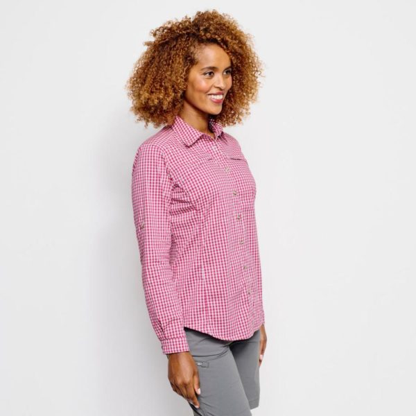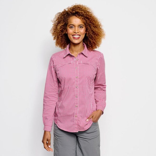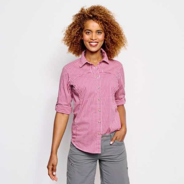 Technical properties from a cotton-rich shirt? You bet! A quick-drying blend of soft cotton and nylon with a bit of spandex for stretch, this UPF 30 shirt will become your new favorite for fishing, hiking, paddling, or any outdoor activity. A modern take on the classic angler’s shirt, it has hidden mesh vents on the back to keep you cool and roll-tab long sleeves that convert to short. Ideal for travel, too, it has hidden zip chest pockets to hold a room key or credit card and OutSmart® Fresh odor control for multiple wearings before laundering. Finished with figure-defining princess seams and our signature embroidered mayfly logo. Active Fit, shaped to contour your figure without restricting.