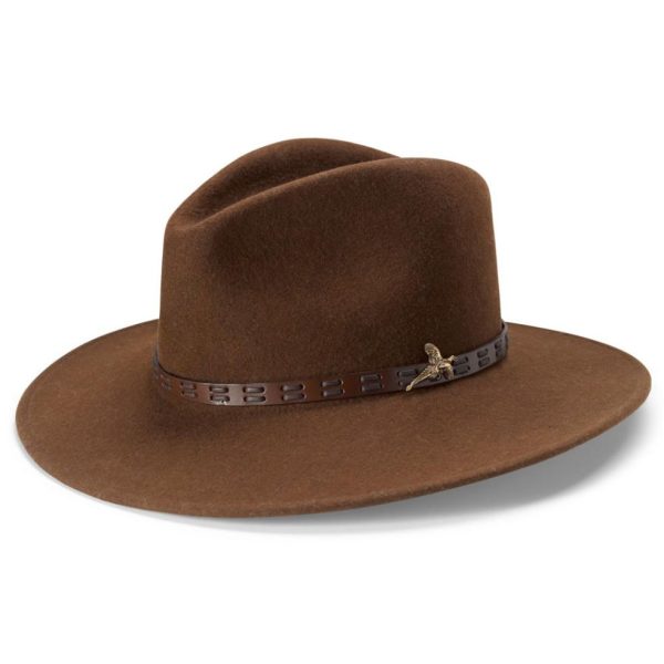 Roll it, crush it, stuff it in a pocket or bag—our resilient Sandanona Hat will spring back into shape, a packable essential you’ll be glad to have on hand. Pure wool felt offers lightweight water resistance with a downturned 3″ brim. The leather hatband is embellished with a pheasant pin. Interior, quick-drying Dri-Lex® sweatband wicks moisture to keep you comfortable. In chocolate.