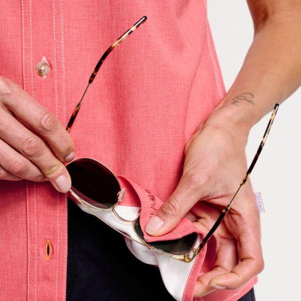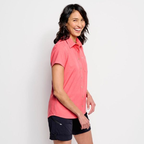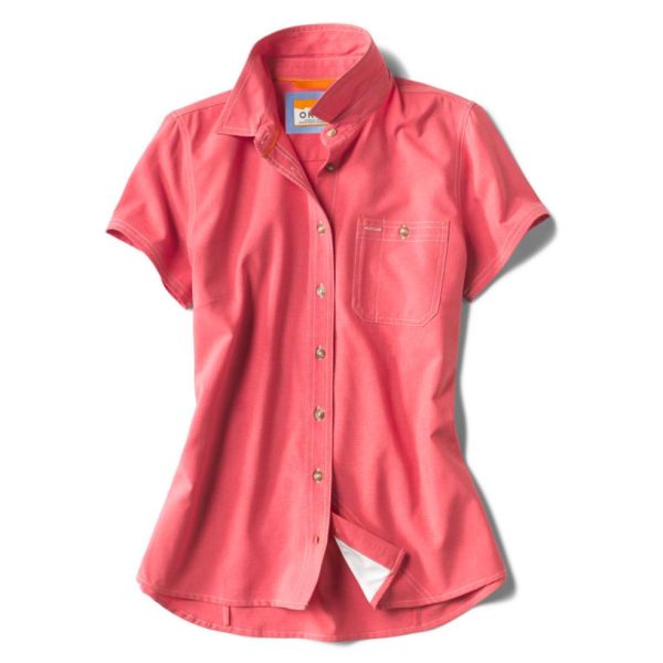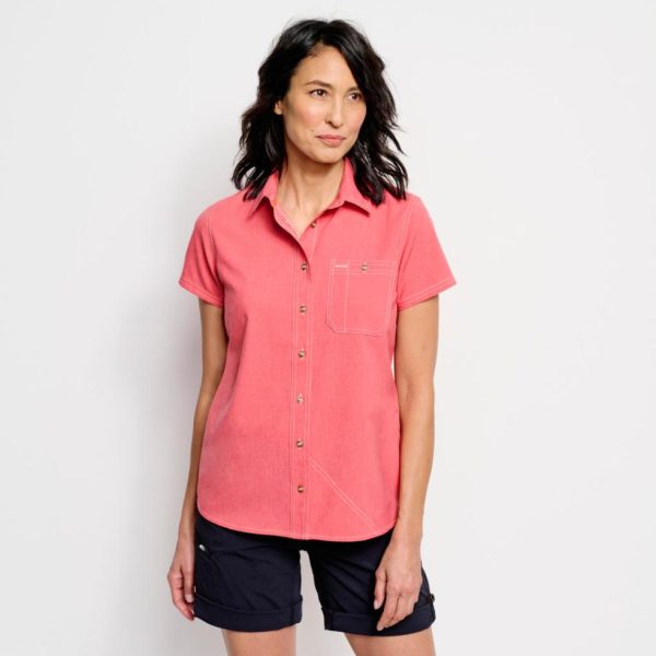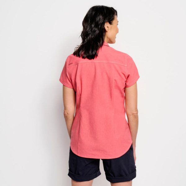 Our customer-favorite fishing, hiking, gardening, all-around-town Short-Sleeved Tech Chambray Workshirt is now even better! Made with MarinoWul+™, our eco-friendly performance fiber, it feels silky soft—and it breathes, wicks moisture, and dries quickly to help regulate body temperature so you feel your best whatever the day brings. With UPF 40 and OutSmart® Fresh odor control, you can confidently wear it more than once between laundering, making it a great choice when packing light for road trips or weekend escapes. And a hidden cleaning cloth keeps your shades or eyeglasses spot free. Active Fit, contoured for comfort without being tight.