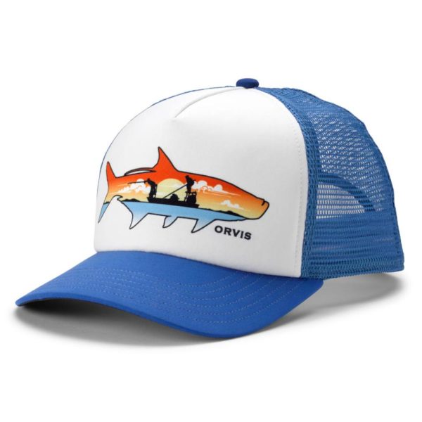 Right at home on the flats and featuring a brim made from recycled fishing nets, our Tarpon Sunset Trucker hat will keep the rays off so you can focus on casting for the elusive silver king. An internal sweat band wicks moisture while the snapback closure adjusts for a great fit. Plus, the recycled brim helps to protect what we love by keeping our oceans cleaner. In blue.